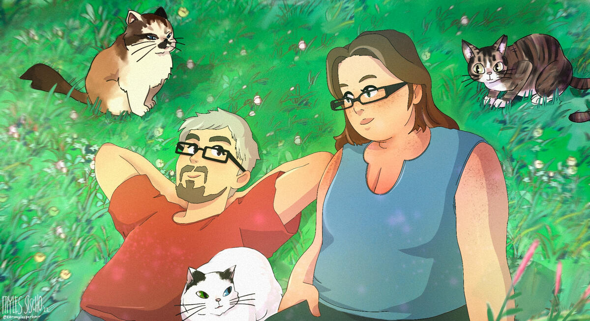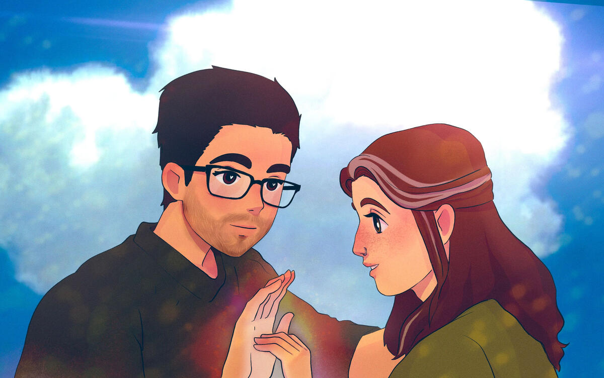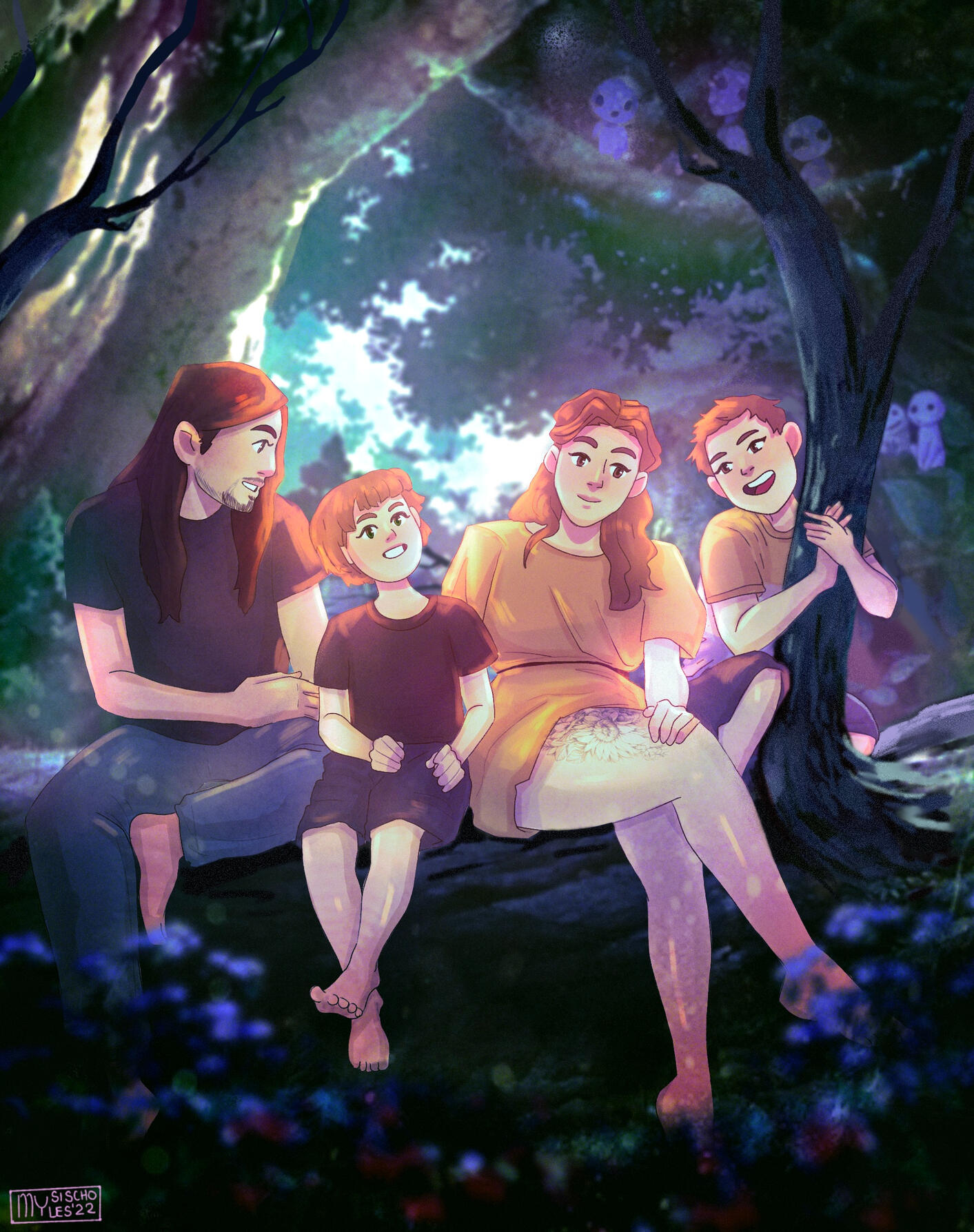 Custom portraits of friends, family, pets, characters, and whatever else you can imagine in the whimsical style of Miyazaki. Imagine yourself as a young daring hero, represent your beautiful wedding day in a different universe, reimagine yourself with a passed loved one, represent a pivotal scene from your story, or just get a unique gift for someone to show your love!Please enjoy these examples from families and creators who have worked with me in the past.